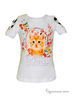 Футболка с короткими рукавами и округлым вырезом горловины. Спереди модель декорирована контрастным принтом. На рукавах присутствуют объемные аппликации и ушки кошки. Отличный вариант для гардероба маленькой принцессы.