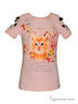 Футболка с короткими рукавами и округлым вырезом горловины. Спереди модель декорирована контрастным принтом. На рукавах присутствуют объемные аппликации и ушки кошки. Отличный вариант для гардероба маленькой принцессы.