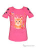 Футболка с короткими рукавами и округлым вырезом горловины. Спереди модель декорирована контрастным принтом. На рукавах присутствуют объемные аппликации и ушки кошки. Отличный вариант для гардероба маленькой принцессы.