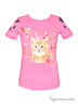 Футболка с короткими рукавами и округлым вырезом горловины. Спереди модель декорирована контрастным принтом. На рукавах присутствуют объемные аппликации и ушки кошки. Отличный вариант для гардероба маленькой принцессы.