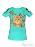Футболка с короткими рукавами и округлым вырезом горловины. Спереди модель декорирована контрастным принтом. На рукавах присутствуют объемные аппликации и ушки кошки. Отличный вариант для гардероба маленькой принцессы.