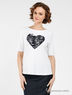 Детали: округлый вырез горловины, полочка декорирована принтом со стразами.