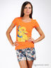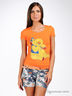 Приталенная трикотажная футболка из приятного на ощупь материала. Круглая горловина. Короткие рукава. Полочка декорирована яркой, игривой нашивкой из атласного материала со стразами.