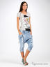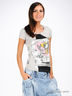 Трикотажная футболка из нежного, приятного на ощупь материала. Круглая горловина. Короткие рукава. На полочке набивной рисунок, декорированный стразами.