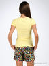 Трикотажная футболка из нежного, приятного на ощупь материала. Круглая горловина. Короткие рукава. На полочке набивной рисунок, декорированный стразами.