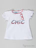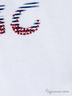 Детали: округлый вырез горловины, застежка на кнопки на спине, короткий рукав-фонарик, полочка декорирована набивным рисунком, стразами и блестками