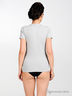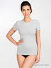Футболка женская из тонкой трикотажной ткани прямого силуэта. Округлый вырез горловины дополнен трикотажной лентой, короткий прямой рукав.