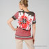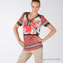 Женская футболка удлиненного кроя с коротким рукавом. Очень легкая и приятная к телу. Яркие цвета и комбинированный принт. Горловина и рукава декорированы атласной лентой.