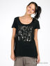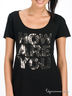 Футболка свободного покроя из хлопка. Задняя часть длиннее полочки. Глубокий круглый вырезгорловины. Надпись вышита пайетками.