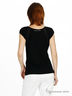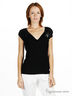 Футболка прямого кроя из тонкого трикотажа. V-образный вырез горловины. Короткие рукава, на плечах шелковые вставки.
