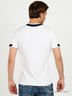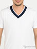Детали: окантовка V-образного выреза и манжеты в виде трикотажной резинки с контрастными полосками