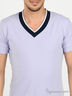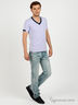 Детали: окантовка V-образного выреза и манжеты в виде трикотажной резинки с контрастными полосками