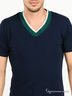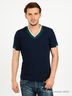 Детали: окантовка V-образного выреза и манжеты в виде трикотажной резинки с контрастными полосками