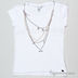 Детали: круглый вырез; короткий рукав; на полочке вставка с пайетками; оригинальное съемное ожерелье в виде цепочек и бусин