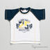 Трикотажная футболка с короткими рукавами реглан. Круглая горловина. Застегивается сзади на планку на кнопках. По бокам вставки из трикотажа в рубчик.. На полочке принт.
