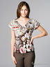 Детали: V-образный вырез спереди и сзади; короткий рукав; оригинальный принт