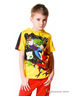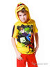 Футболка с короткими рукавами контрастной расцветки. Изделие дополнено капюшоном. Отличный вариант для маленького модника.