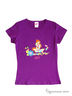Приталенная модель с коротким рукавом украшена аппликацией.