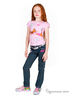 Футболка прямого кроя с рукавами-фонариками. Полочка украшена декоративными аппликациями.