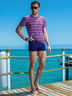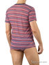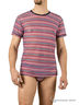 Стильная мужская футболка свободно облегающего силуэта с коротким рукавом выполнена из мягкой эластичной сетки с антисолнечным эффектом. Изделие легко стирается, быстро высыхает, не требует глажения, устойчиво к появлению затяжек. Футболка выполнена из выделенного раппортного принта в трёхцветную полоску разной ширины.
