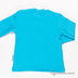 Футболка прямого кроя с длинным рукавом застегивается на две кнопки на левом плечике. Полочка украшена декоративными аппликациями.