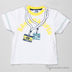Превосходная футболка для мальчика. Округлый вырез горловины, короткие рукава, застежка на пуговицы. Полочка изделия украшена принтом.