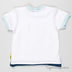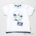 Превосходная футболка для мальчика. Округлый вырез горловины, короткие рукава, застежка на пуговицы. Полочка изделия украшена принтом и нашивками.