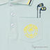 Яркая футболка поло для мальчика. Отложной воротник, короткие рукава, застежка на пуговицы, на полочке расположен открытый карман. Изделие декорировано нашивкой.