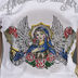 Женская футболка выполнена из 100% хлопка. Модель имеет круглый вырез, отделанный мягким трикотажем. Футболка украшена тату-принтами, декорированными цветными стразами.