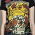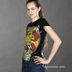 Женская футболка выполнена из 100% хлопка. Модель имеет круглый вырез, отделанный мягким трикотажем. Футболка украшена тату-принтами, декорированными цветными стразами.
