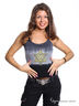 Стильная футболка облегающего кроя без рукавов на бретельках. Изделие декорировано оригинальным принтом.