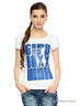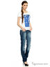 Футболка с короткими рукавами и округлым вырезом горловины. Спереди модель декорирована контрастным принтом. Отличный вариант для создания летнего образа.