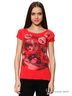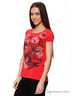 Детали: округлый вырез горловины, короткий рукав-фонарик, полочка декорирована оригинальным набивным рисунком