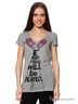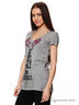 Детали: v-образный вырез горловины, короткий прямой рукав, полочка декорирована оригинальным набивным рисунком.