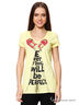 Детали: v-образный вырез горловины, короткий прямой рукав, полочка декорирована оригинальным набивным рисунком.