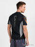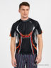 Спортивная футболка из плотной неэластичной ткани. Круглый вырез горловины, короткий рукав, контрастный рисунок, по бокам вставки эластичной ткани. Отличный вариант для занятий спортом.
