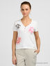 Потрясающая футболка из тонкого эластичного трикотажа. V-образный вырез горловины, короткий рукав, на полочке планка с пуговицами, декорирована принтом. Отличный вариант для тех, кто ценит комфорт и качество.
