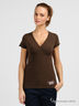 Великолепная футболка из тонкого эластичного трикотажа. V-образный вырез горловины с запахом, кроткий рукав, отрезной лиф. Декорирована принтом. Отличный повседневный вариант.