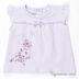 Детали: круглый вырез; рукав крылышко; застегивается на кнопки на плече; на полочке аппликация с бархатистым напылением
