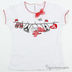Футболка для девочки из хлопковой ткани. На полочке оригинальная аппликация со стразами. Застегивается на пуговицу сзади. Окантовка выреза и края рукава контрастного цвета.