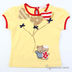 Футболка для девочки с коротким рукавом. Застегивается на пуговицу сзади. Декорирована аппликацией со стразами на полочке. Контрастная окантовка круглого выреза и края рукава.