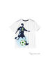 Очаровательная футболка для мальчика с коротким рукавом и округлым вырезом горловины. Модель декорирована принтом на груди.