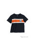 Очаровательная футболка для мальчика с коротким рукавом и округлым вырезом горловины. Модель декорирована принтом на груди.