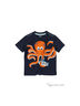 Очаровательная футболка для мальчика с коротким рукавом и округлым вырезом горловины. Модель декорирована принтом на груди.
