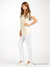 Футболка с овальным вырезом. Короткие рукава-фонарики. Декорирована сеточкой.