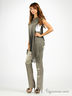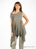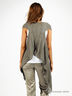Комплект футболок состоит из майки в рубчик на тонких лямках. Вторая майка необычного кроя без рукавов, расклешенная книзу. Спереди внизу и на верхней задней части изделия вставки из рельефного трикотажа. Неравномерная длина низа. Низ обработан оверлоком.