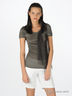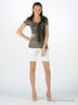 Футболка с овальным вырезом. Короткие рукава-фонарики. Декорирована сеточкой.