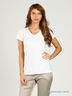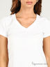 Футболка с V-образным вырезом. Короткие рукава. Декорирована стразами на спине.