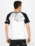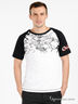 Практичная футболка из трикотажа средней плотности с округлым вырезом горловины и длинным рукавом. Плечи и рукава контрастного черного цвета. Полочка, рукав и спинка декорированы принтами. Отличный вариант для создания повседневного образа.