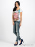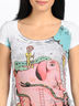 Оригинальная футболка подойдет как для прогулок, так и для вечернего отдыха в кругу друзей. Округлый вырез горловины дополнен трикотажной лентой. Футболка декорирована оригинальным набивным принтом.